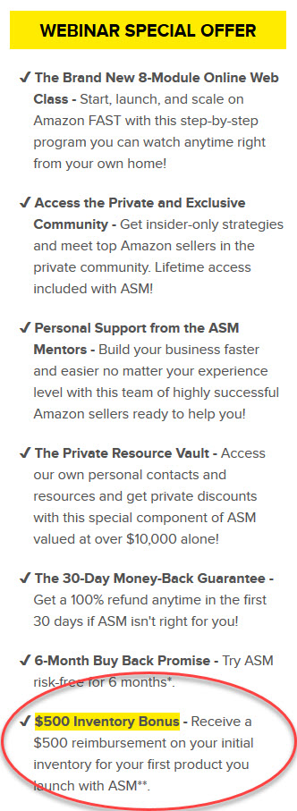In order to jump-start your business and start making sales the day your product goes live, ASM is going to reimburse you for up to $500 in any Amazon advertising that you spend.